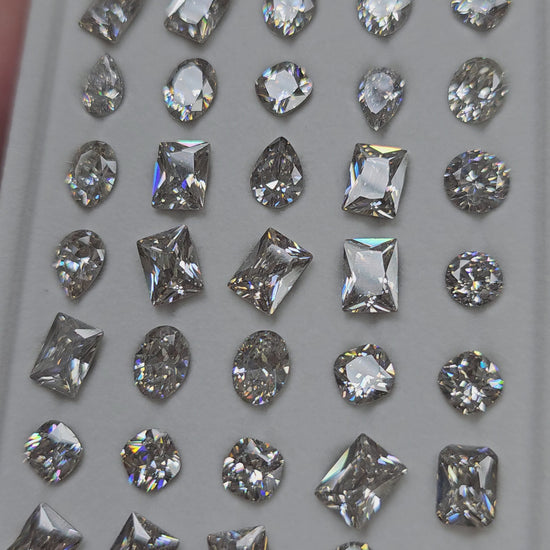 Shapes: Assorted, including emerald, step cut rectangle, octagon, round, cushion, pear, oval...