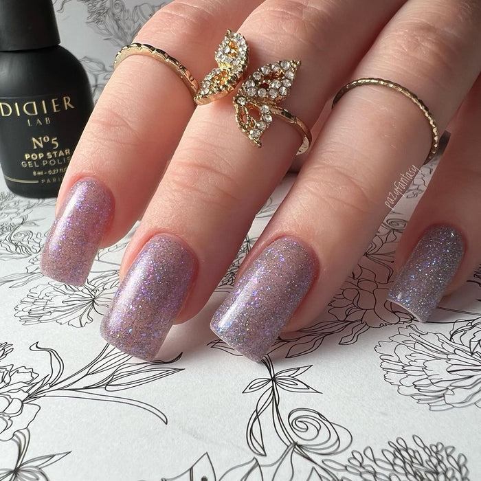 Pop Star gel polishes are enriched with various-sized iridescent and even holographic glitter, making your nails appear adorned with multicoloured gemstones. The sparkling particles change their colors and intensity with every movement or different lighting, making every gesture of your hand look enchanting.