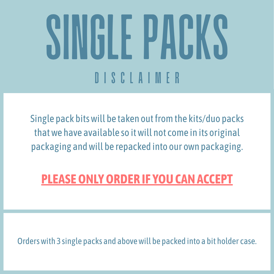 Disclaimer: Single pack bits are brand new, taken out from kits/duo packs and repacked into our own packaging. Please only order if you can accept. Orders with 3 or more single bits with no original packaging will be packed into a bit holder case.