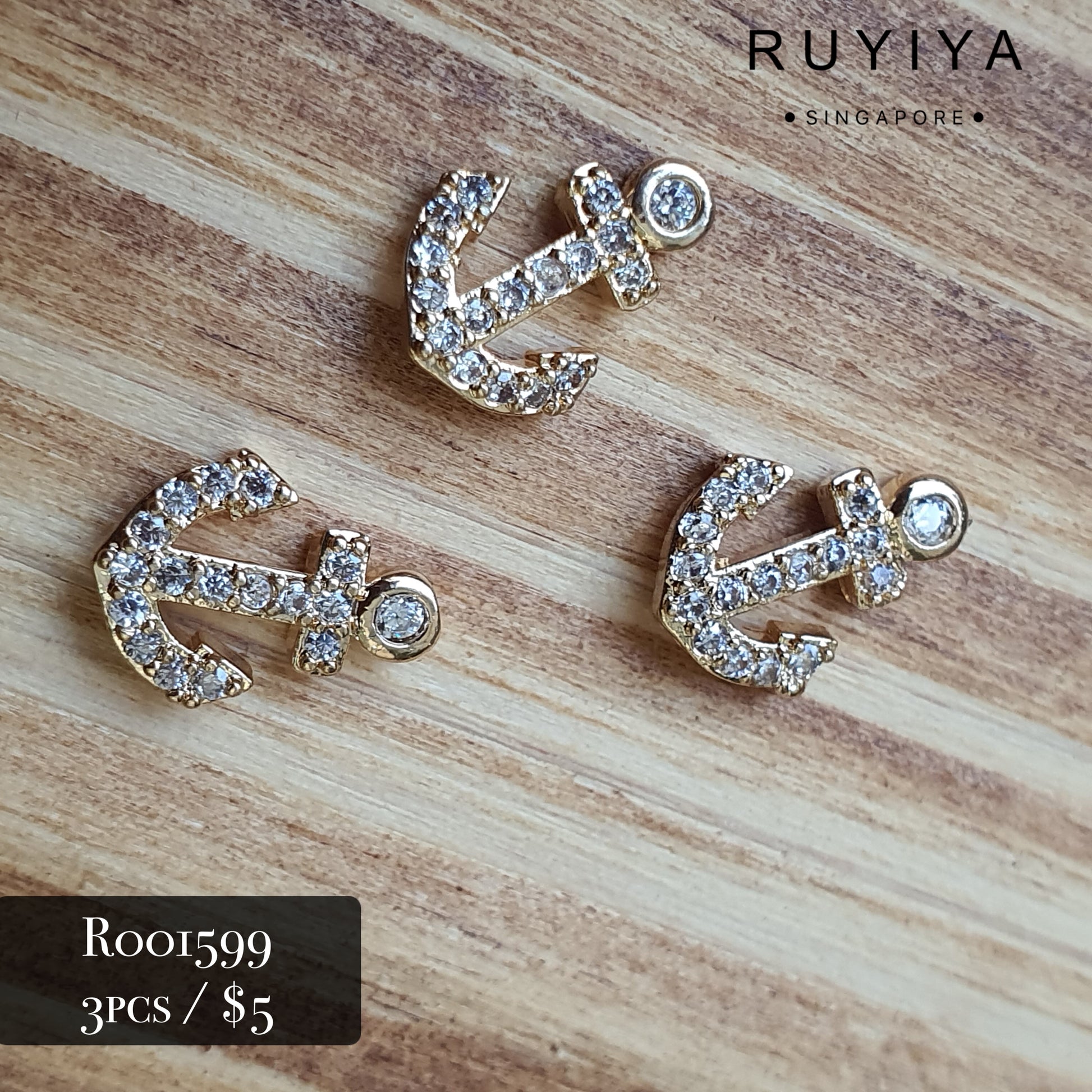 GOLD ANCHOR CRYSTAL CHARM R001599