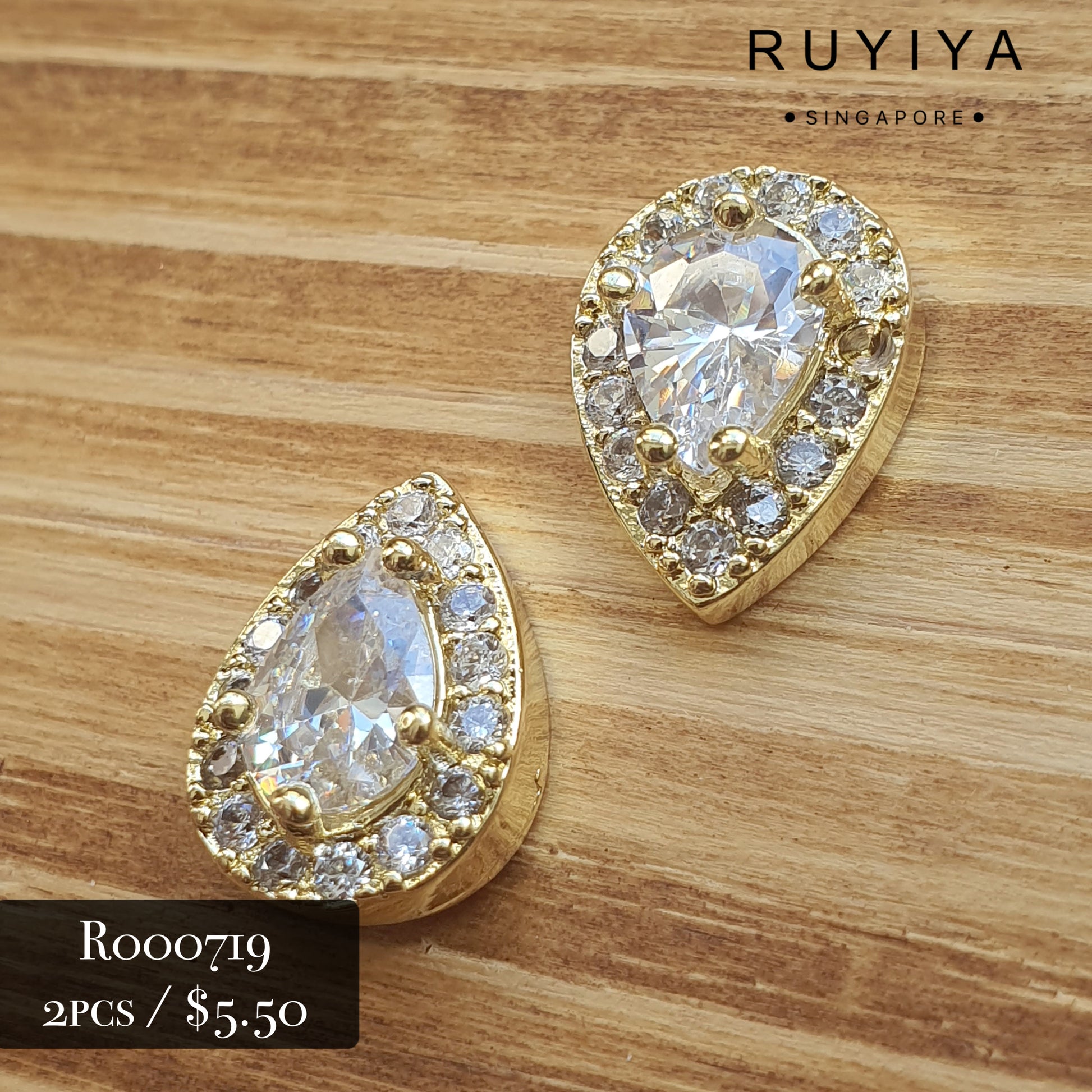 GOLD GORGEOUS TEAR DROP CRYSTAL CHARM R000719