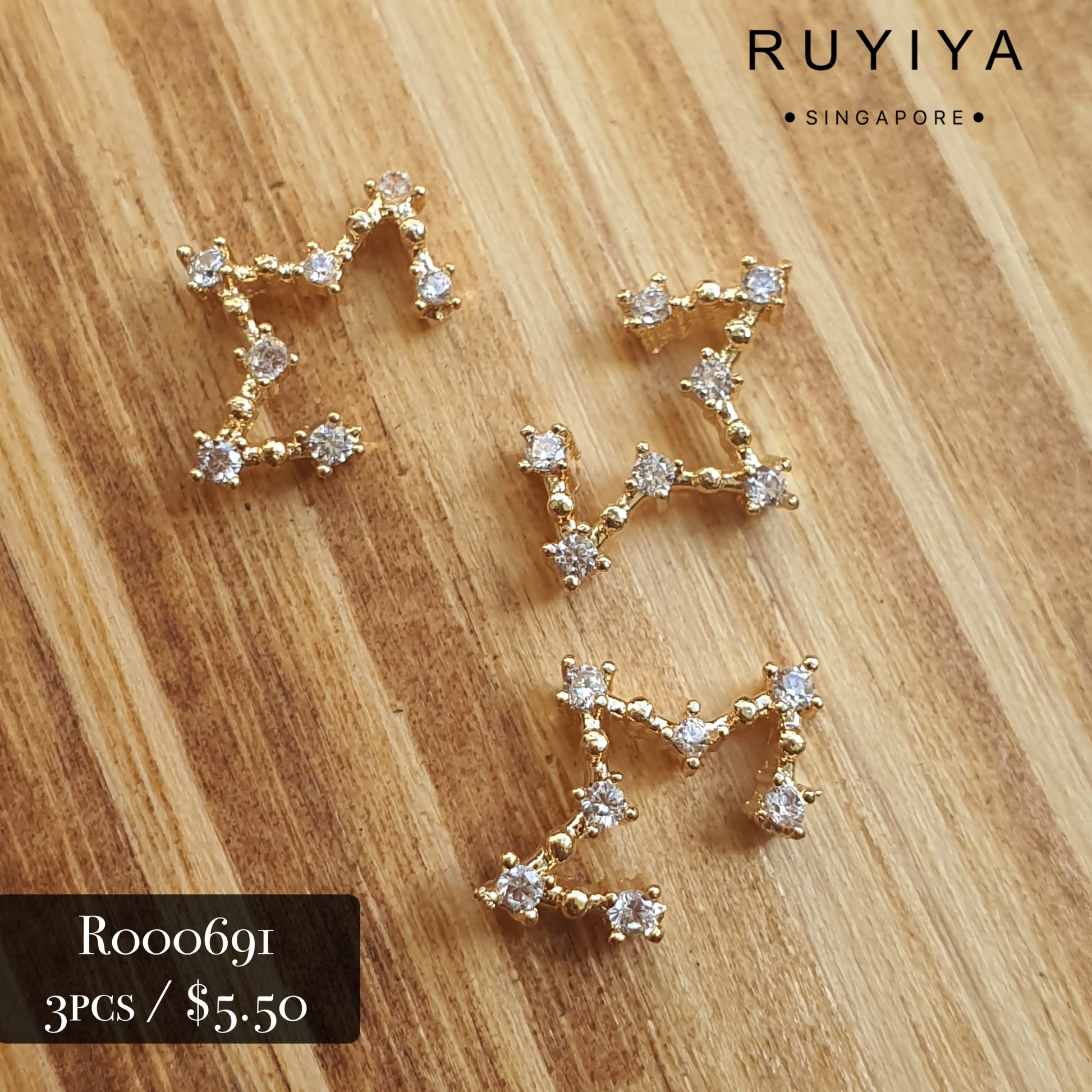 Crystal studded metal charms for nail art and crafts.