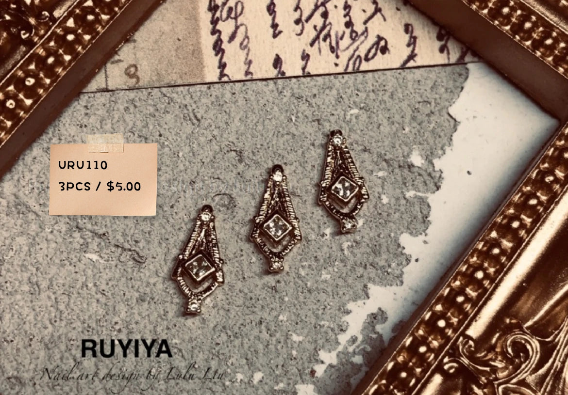 Crystal studded metal charms for nail art and crafts.