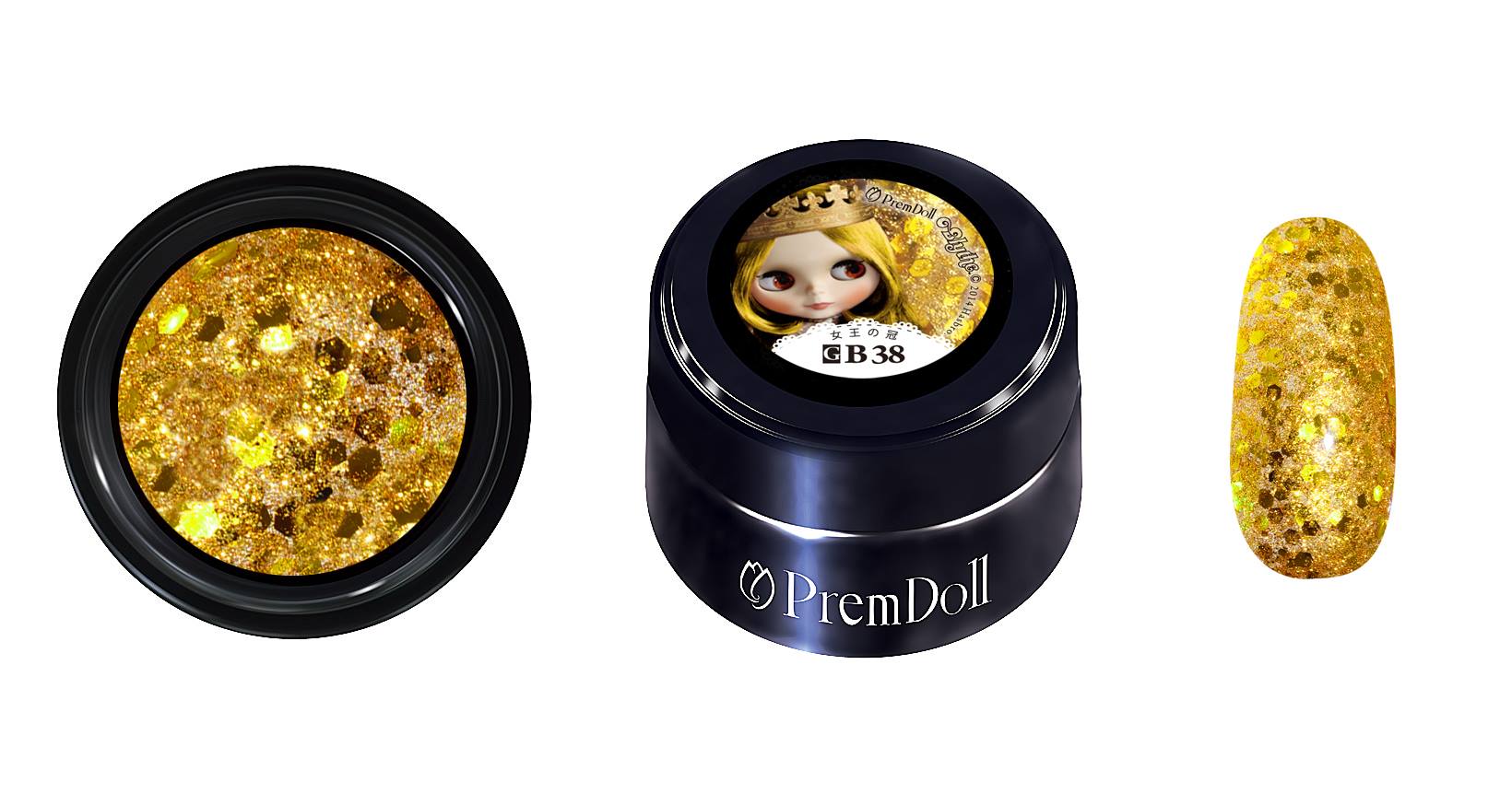 Chunky gold glitters in various shapes and sizes in amber glitter gel.