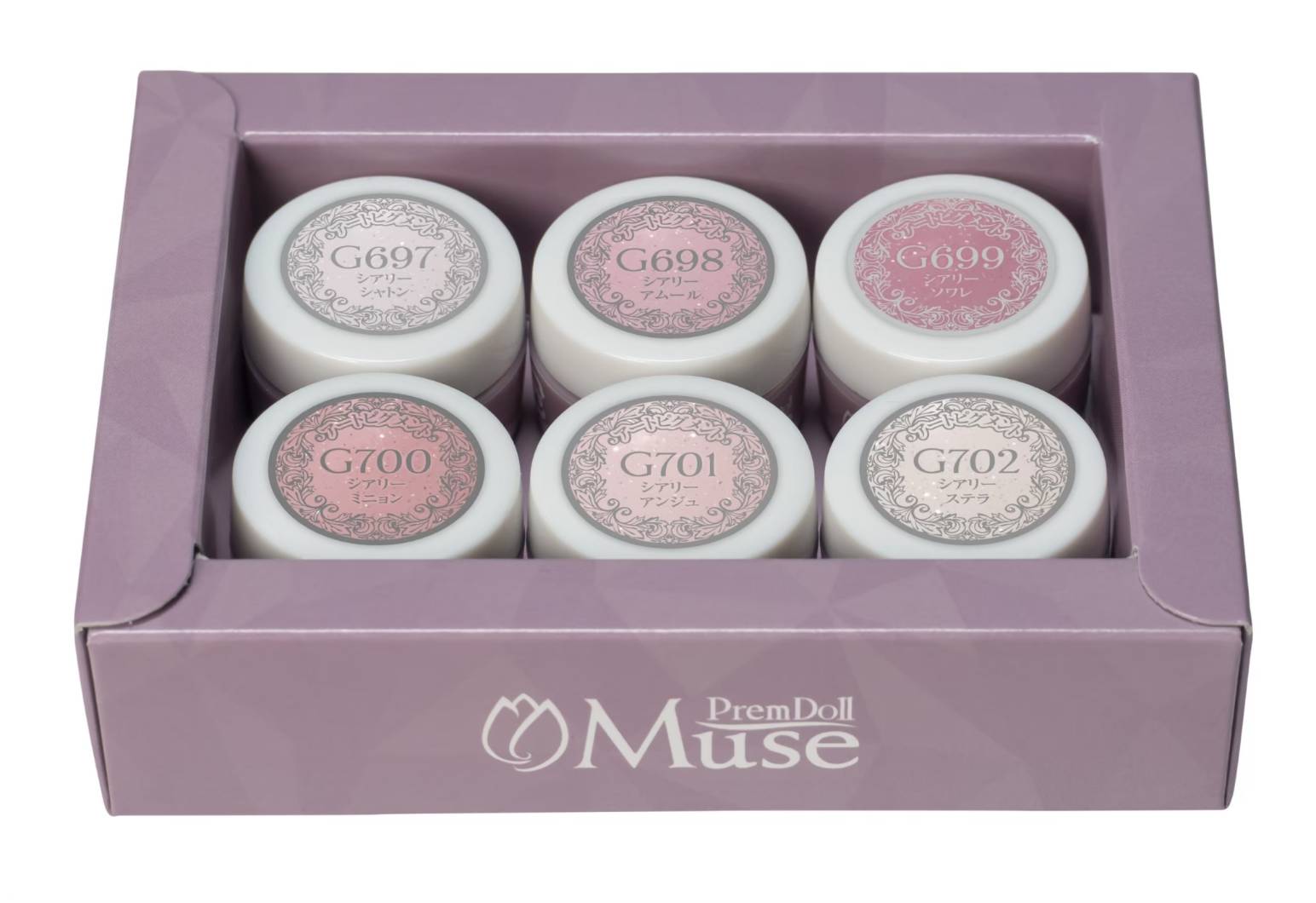 Set of 6 PREMDOLL Muse gel colors.