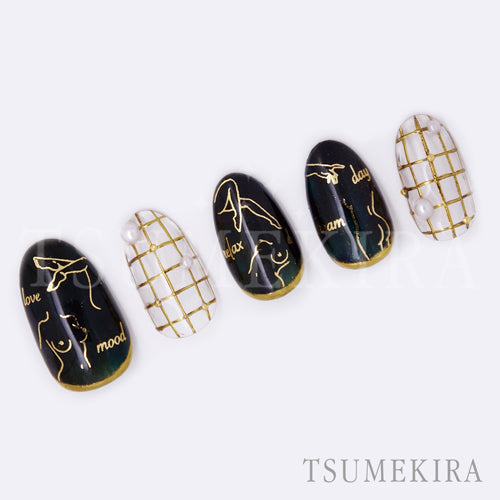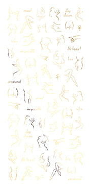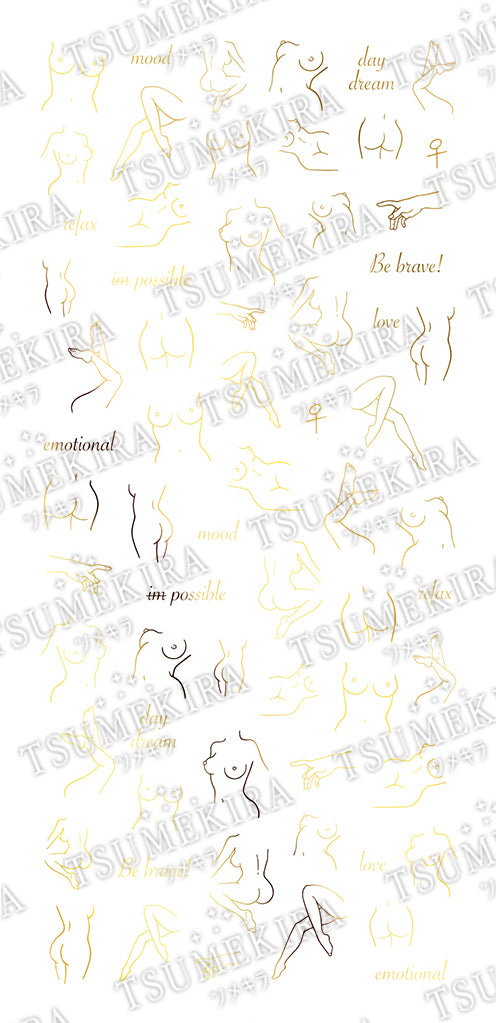 Beautiful and mysterious female body design made into a sticker with a gold line drawing.