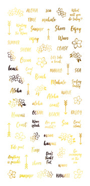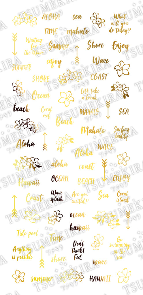 Gold wordings with hawaiian vibe suitable for beach nail arts.